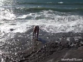 Big tits MILF flashes at beach