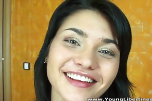 Petite Little Brunette Stretches Her Filled Pussy - Young Libertines