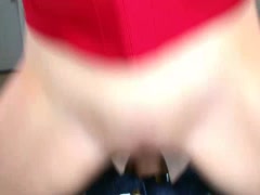 Skinny blonde teen's excited when rubbing big dick in her pussy