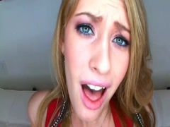Horny young blonde girl sucking a big dick on the bangbus