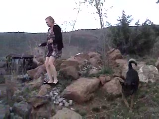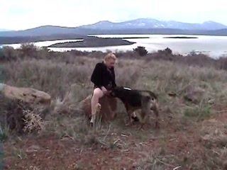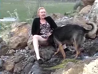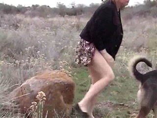 Blonde dirty MILF fucking her dog outdoor