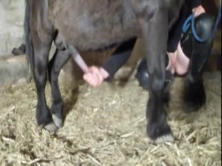 Amateur girl fucking horse in farm store
