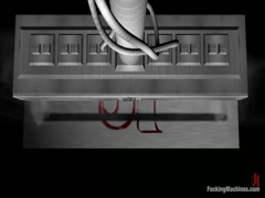 Young horny girl's playing hard with sex toys machine