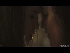 Horny babe girls licking in bathtub