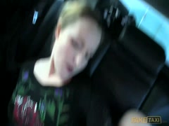 Busty horny customer having threesome fake taxi