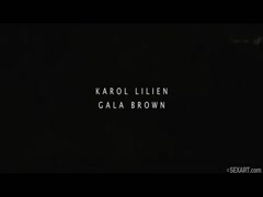 Horny lesbians touch tight cunt