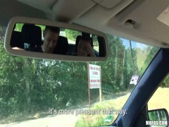 Skinny blonde teen fun with strange driver man