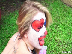 Horny bitch chick blow fat dick