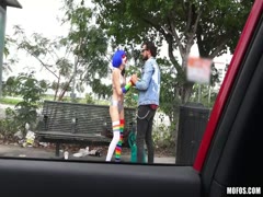Putting her tight pussy amateur in car