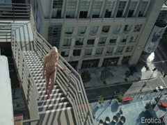 Hot blonde girl's walking nude on the stair