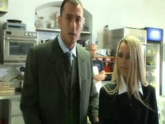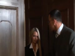 Blonde sexy loves doggy style in office room