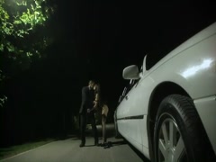 Meeting outside at mid night on luxury car