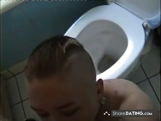 Tatted chick sucks and takes cum in her mouth