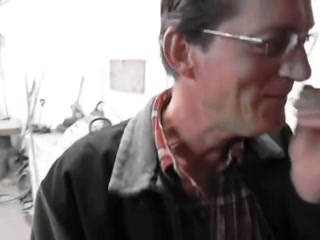 Old salesman blowing black cock in a hardware store