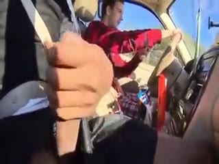 Str8 French trucker jerks his cock while driving