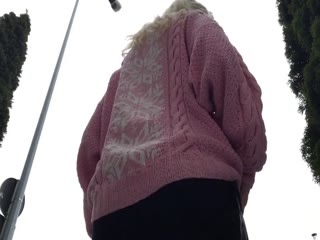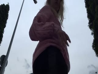 Blonde girl records her farts in a few public places.