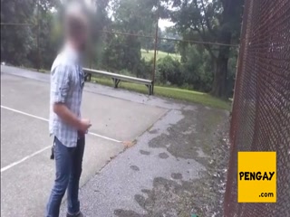 Hot guy jerking his cock at the park
