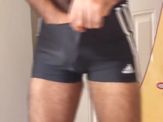 Hairy asian,guy fucking horny in swimming trunks
