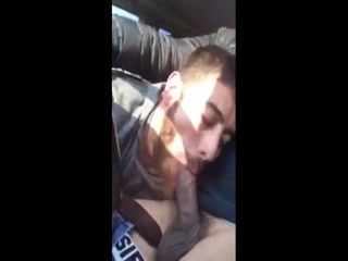 Morning blow job while driving his boy at his work place