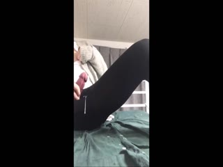 Hand-free masturbation in nylon stockings and high heels