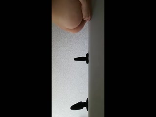 I have three plugs -- one's too small, one's about right, and one's too big. I insert each into my ass in turn without using lube, and then suck them.