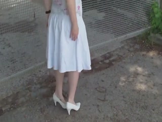 Billige Hartz-4-Nutte steckt draussen Dildo in die Fotze!