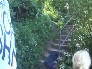 Blonde blowing cock outdoors