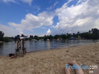 Girl caresses herself on a nude beach