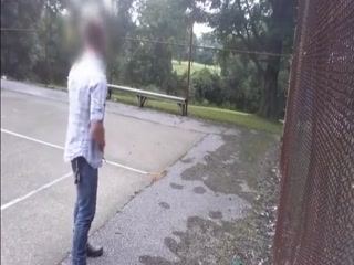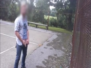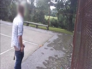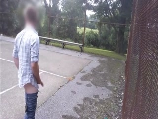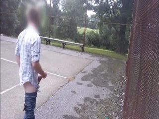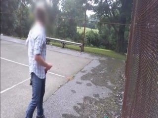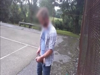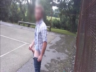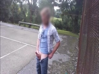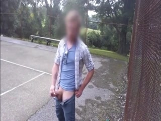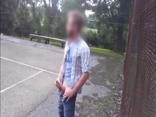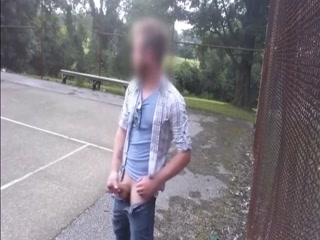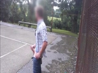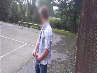 Hot guy jerking his cock at the park