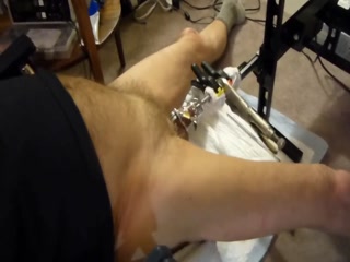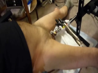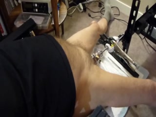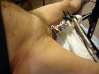 Wearing a chastity cage, the fuck machine sounds my cock with an 11mm sound (biggest that would go into the end of the chastity cage.