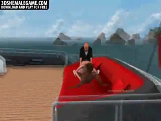 Hot 3D cartoon shemale double teamed on a boat