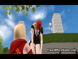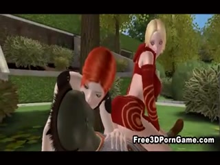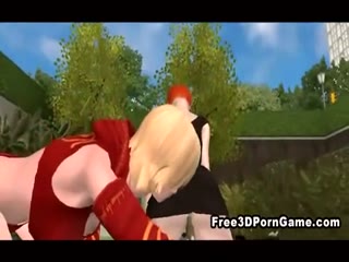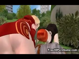 Busty 3D cartoon shemale hottie gets double teamed