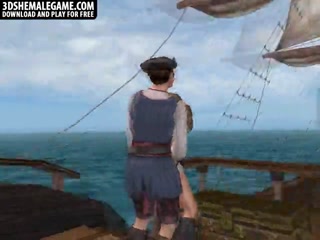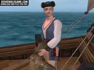 3D cartoon shemale babe fucked on a pirate ship